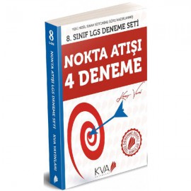 KVA Yayınları 8. Sınıf Nokta Atışı 4 Deneme Kitabı Yeni Müfredat Deneme 8. Sınıf LGS Deneme Nokta Atışı 4 Deneme Seti içerisinde 4 adet sözel alan ve 4 adet sayısal alan olarak toplam 8 adet denemeden oluşmaktadır. Denemeleri oluşturan sorular Milli Eğitim Bakanlığının yayınladığı yeni nesil soru tarzları, sayıları ve süreleri göz önünde bulundu..